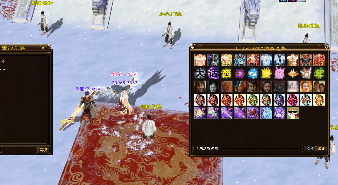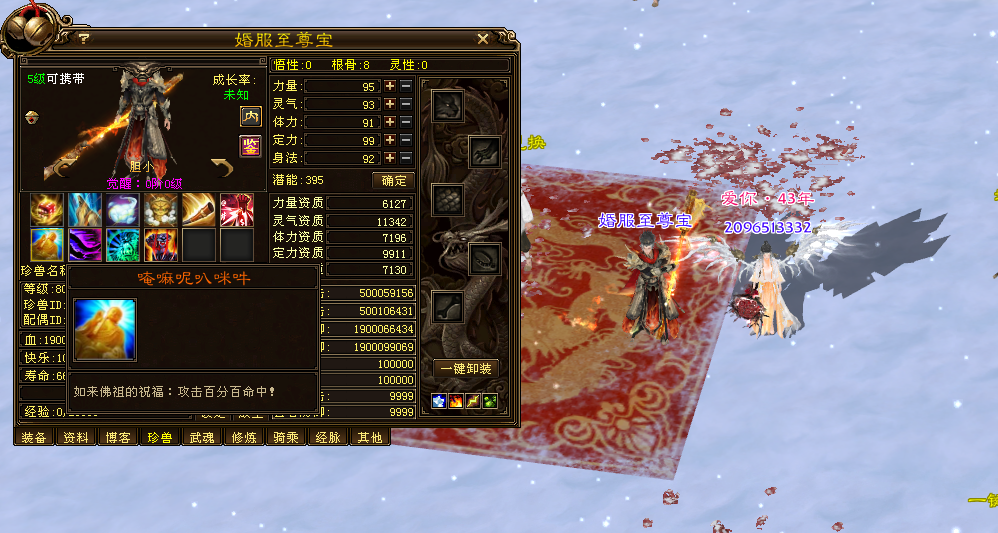 100=21亿门贡+21亿元宝+定制宝宝+满潜能+药+彩色名字